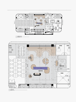 The common areas were designed to encourage collaboration and creativity, incorporating playful, bright colors and geometric shapes that contrast the otherwise neutral palette. Bold, saturated hues enliven the lounge spaces, while playful furniture and organic forms create a more relaxed and engaging atmosphere. These areas combine functionality with artistic expression, ensuring that every corner of the office reflects 1000 Heads’ creative ethos, while maintaining a cohesive design language throughout the space.
