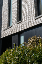 The blend of elongated brickwork and powder-coated steel panels creates a façade that feels both modern and grounded in craftsmanship. These material choices not only highlight elegance but also ensure durability. Greenery at the ground level softens the structure, creating a natural contrast to the building’s urban lines.