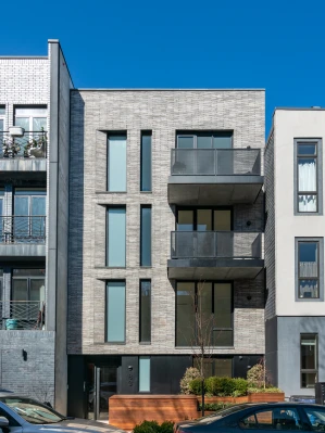 During the inital North Brooklyn real estate rush, 83 Eagle had the chance to question what is a luxury development. We chose to forego opulance, instead choosing more open and calming spaces with meaningful connect to the outdoors, allowing the well crafted materials along with clean design lines to be the focus. An elongated brick façade is accented by powder coated steel paneling, alluding to a graceful fusion of materials.