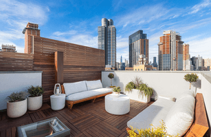 The bathrooms are designed as serene retreats, featuring modern fixtures and elegant finishes. The rooftop terraces offer sweeping views of the city skyline, creating an ideal outdoor living space. Designed for relaxation and entertaining, these spaces combine greenery and ample seating, providing a peaceful escape while staying connected to the vibrant surroundings.
