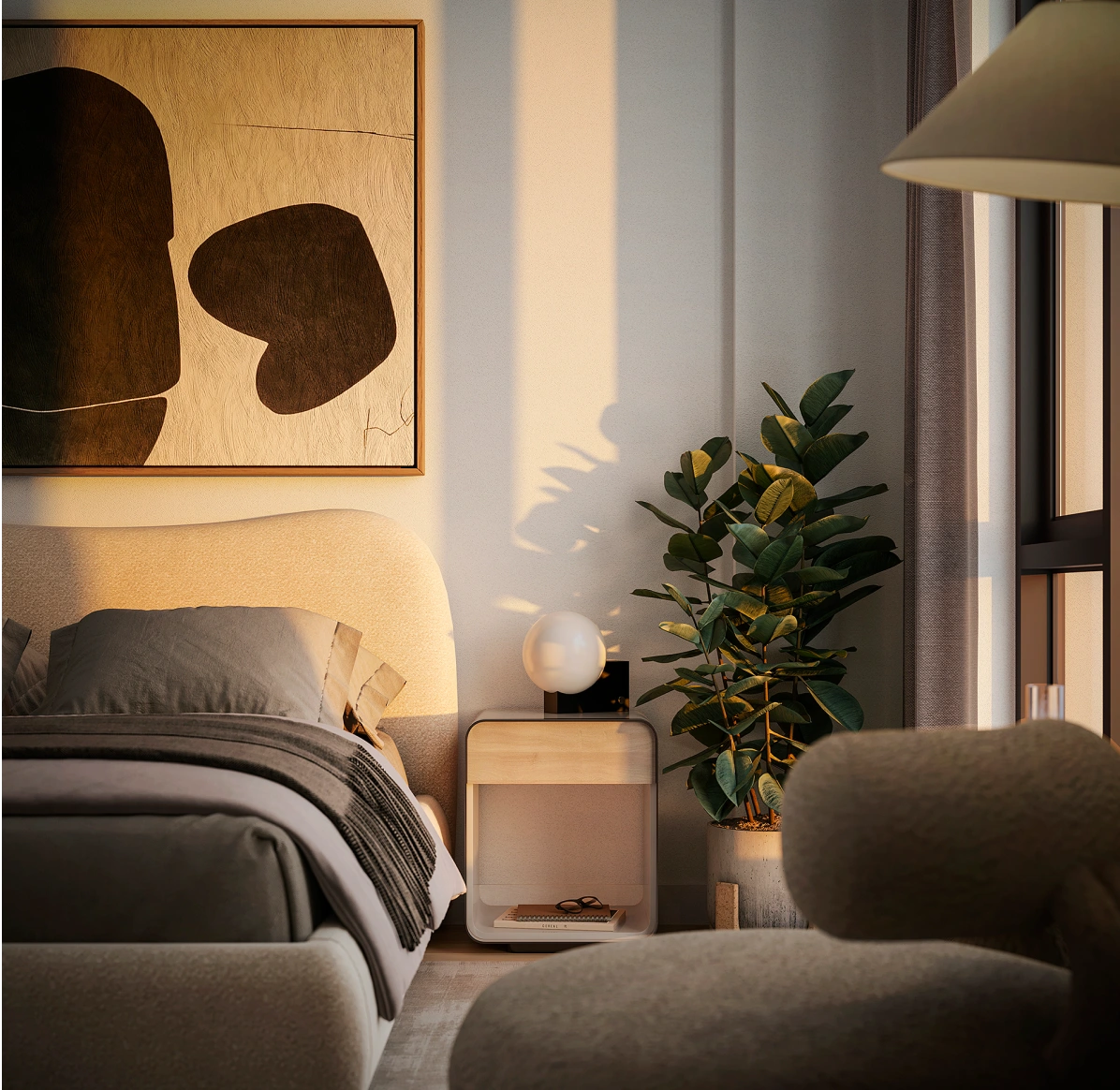 The bedrooms continue the material and tonal language of the project, elegant yet discrete. Every detail reflects the thoughtful design choices that where made to elevate the everyday experience.