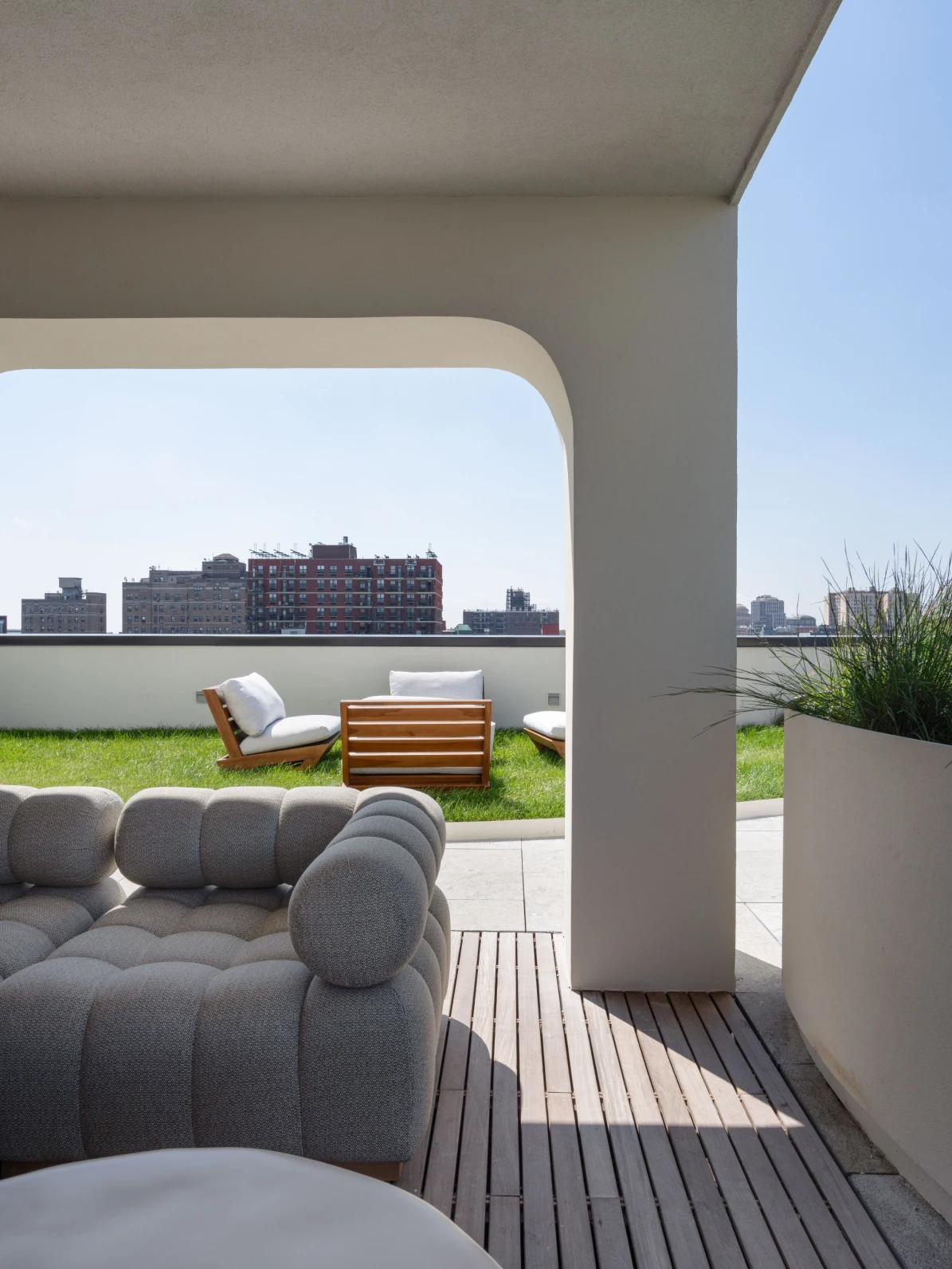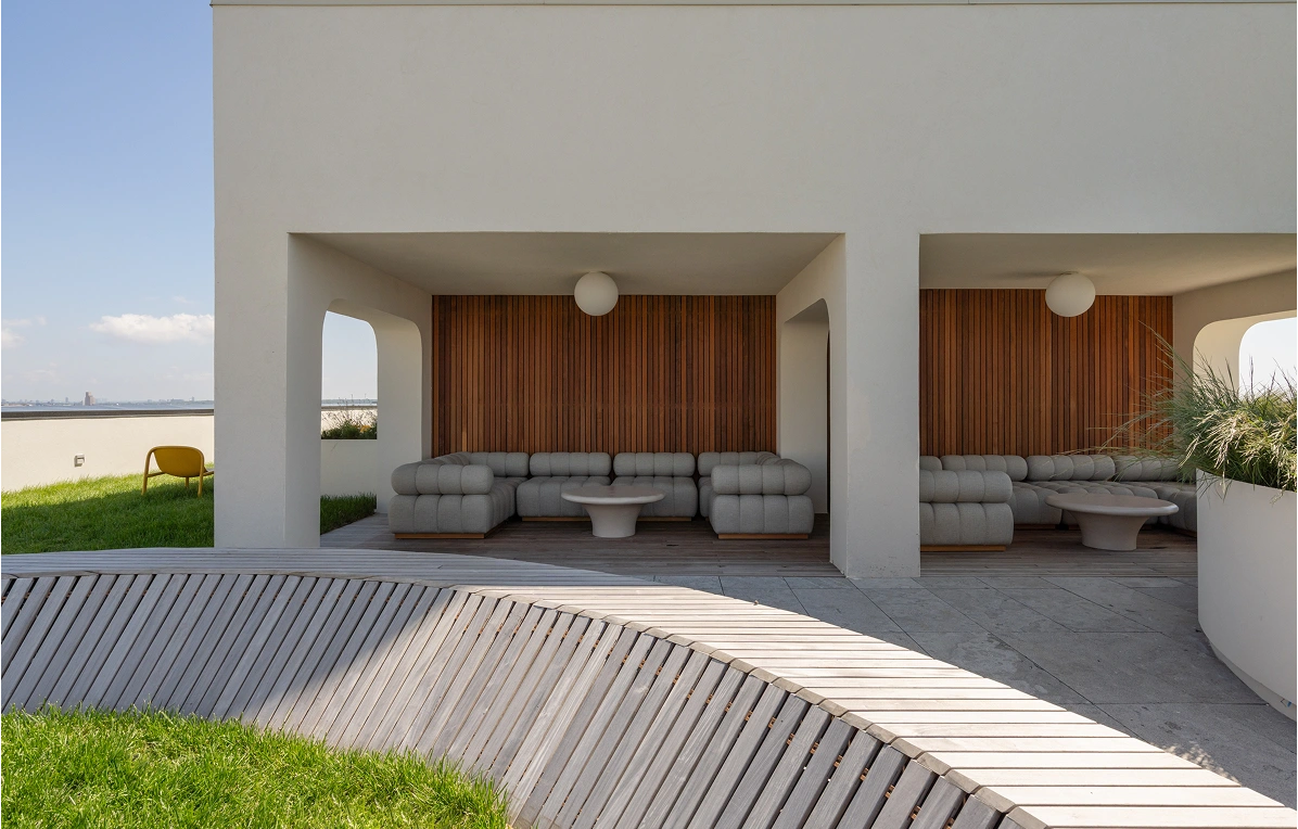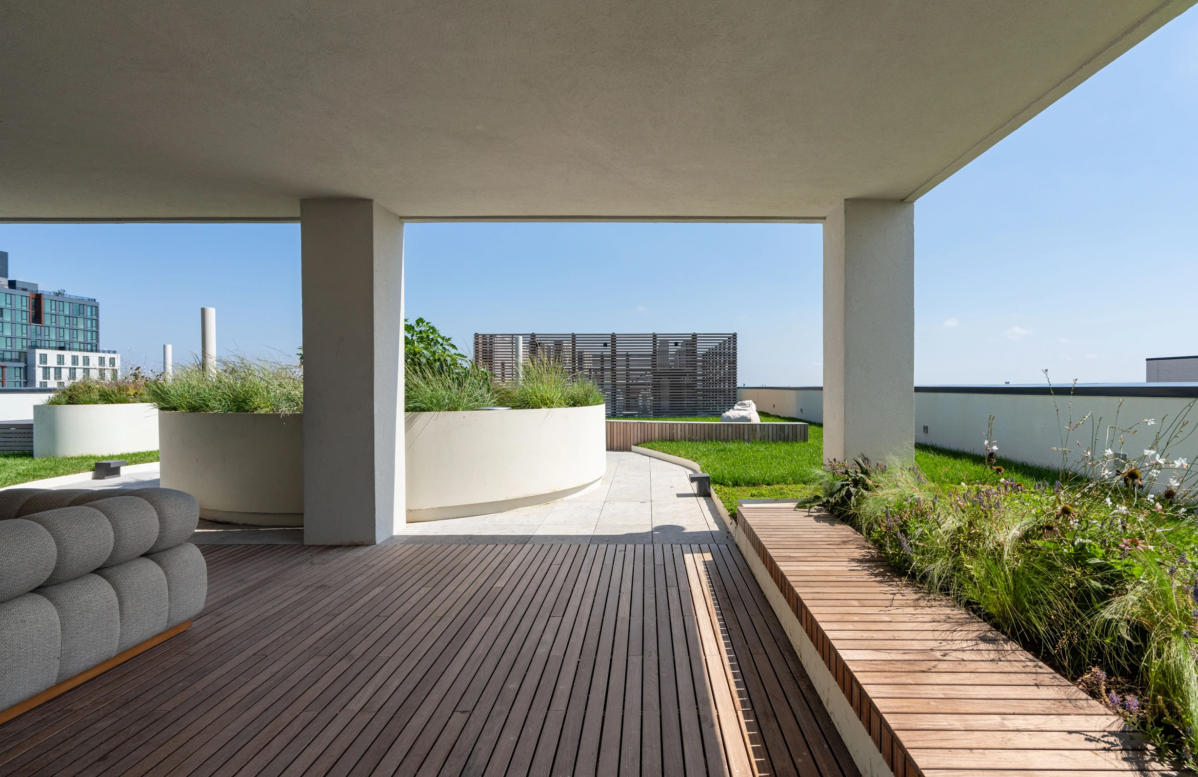 The rooftop terrace is an immersive retreat, with panoramic views and natural materials that echo the warmth of the interiors.