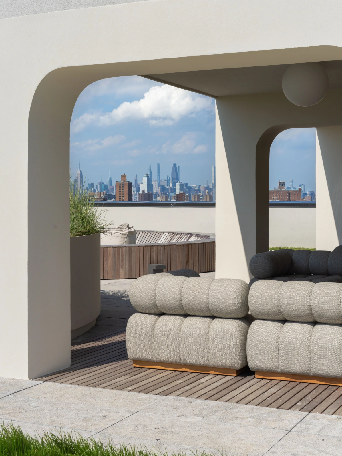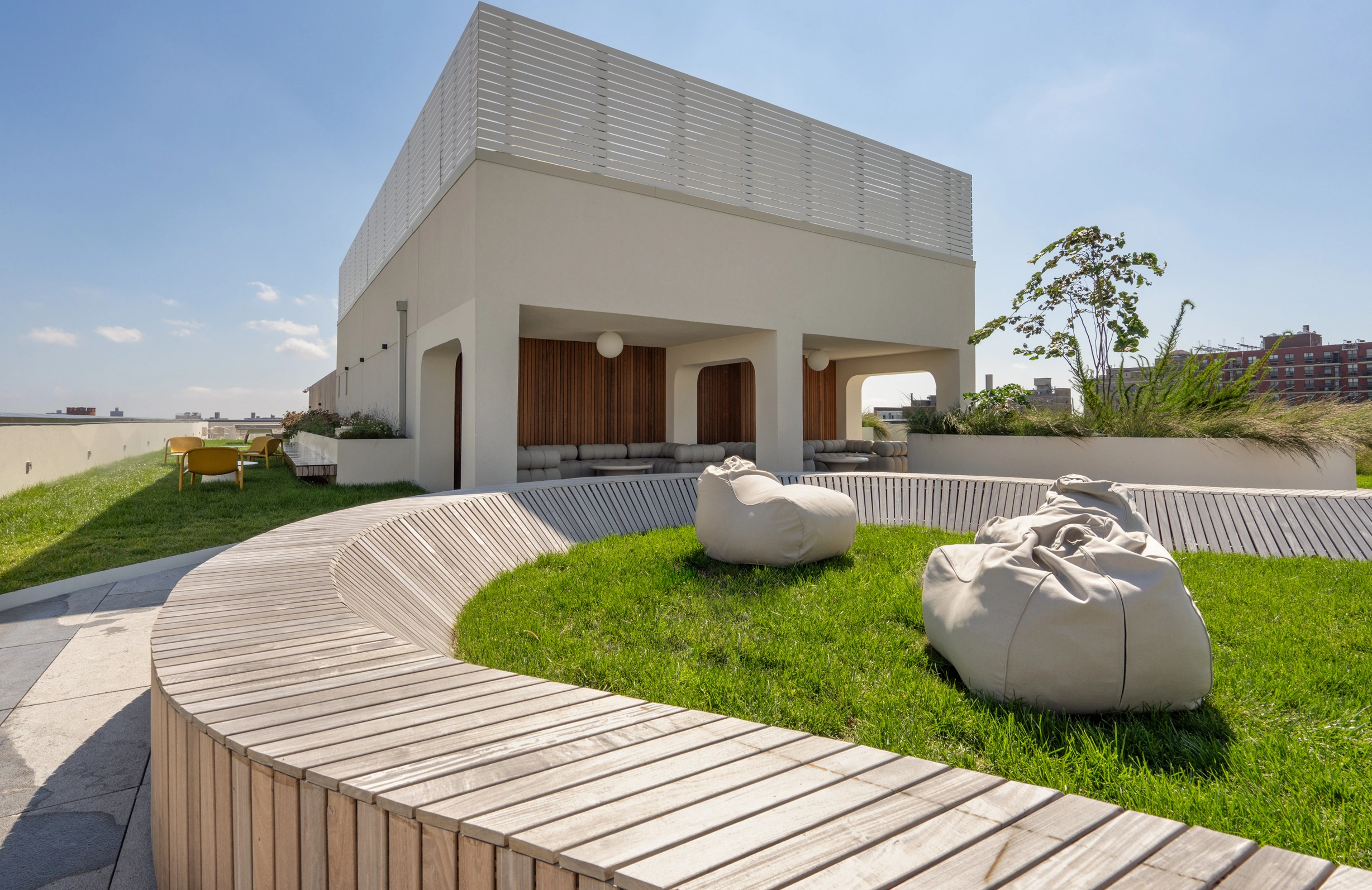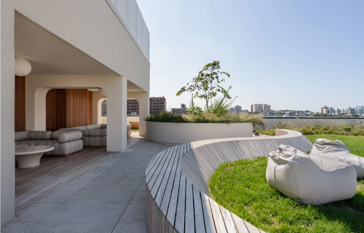 The rooftop terrace is an immersive retreat, with panoramic views and natural materials that echo the warmth of the interiors.