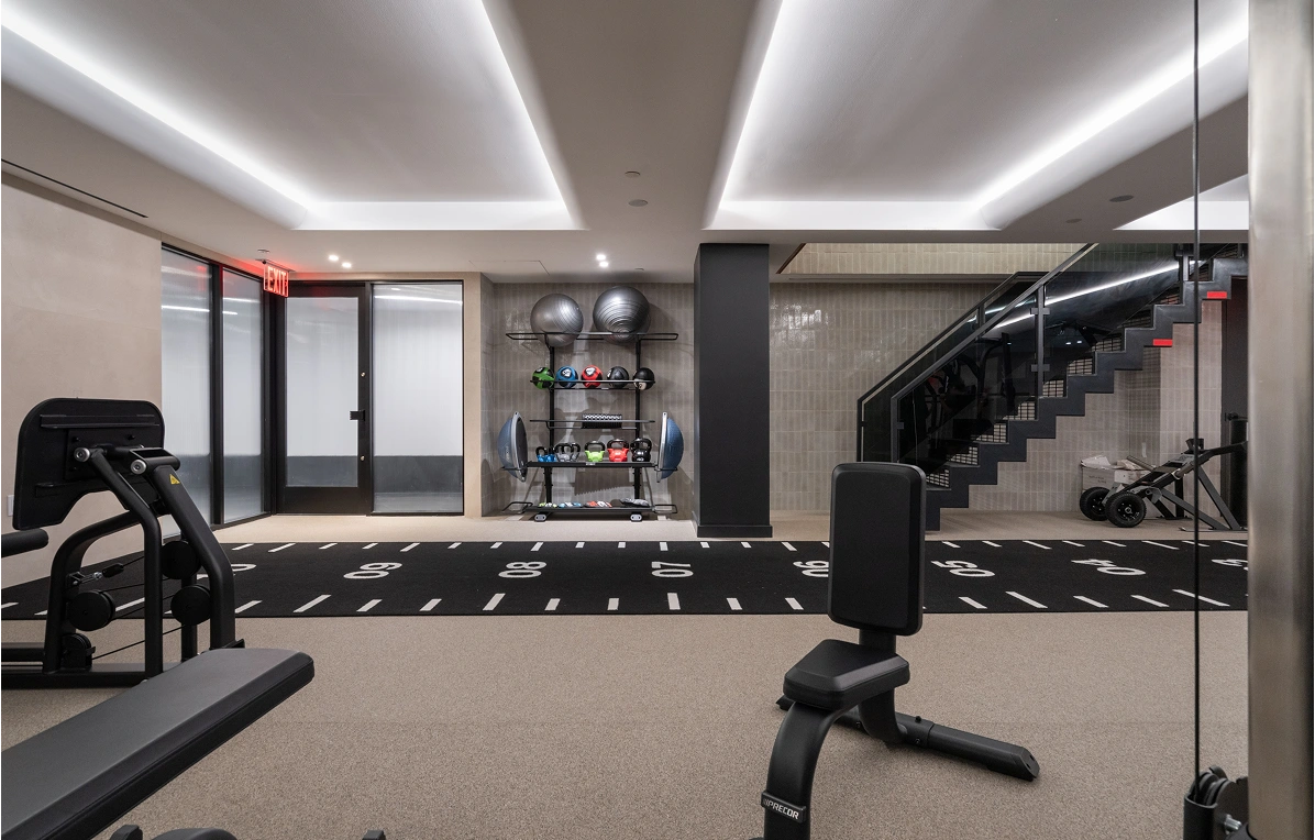 A curated color palette of deep earth tones and soft neutrals creates a warm, tactile experience that carries through the gym, game areas, and private lounges.