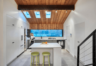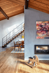 Designed for an acclaimed video editor and architectural photographer, this upstate New York home was a truly unique gut renovation. The existing home had character and qualities that deserved to be kept in tact, however the layout of certain social and private spaces were not being utilized to their fullest potential. Walls and finishes were removed completely to allow for the updates, which feature a solid oak and steel cantilevered staircase up to a loft that had been closed off previously.